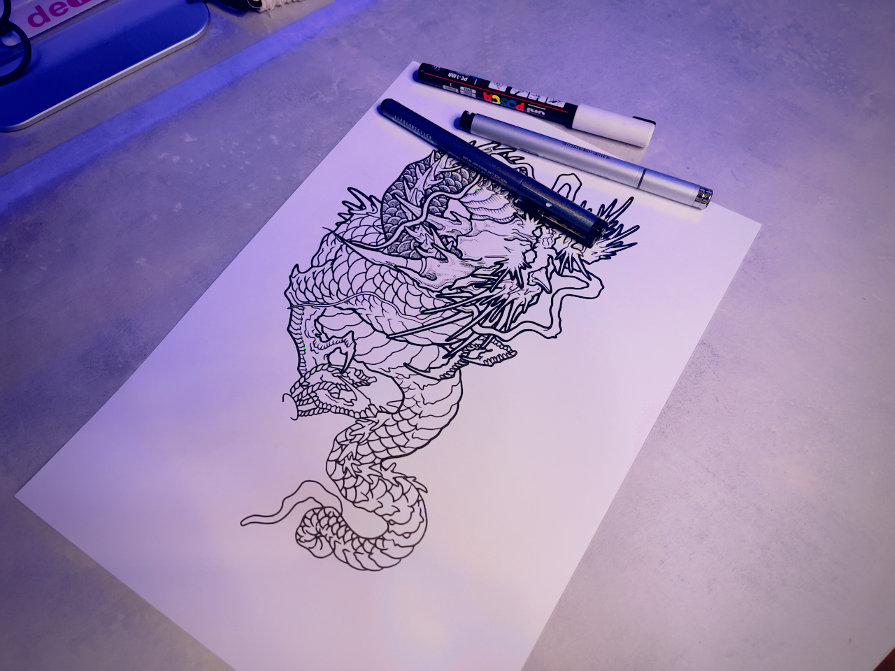 Not just the ideas, but the process — the routine, the tools, and the way everything comes together from a blank sheet into a finished piece of tattoo-ready artwork.
