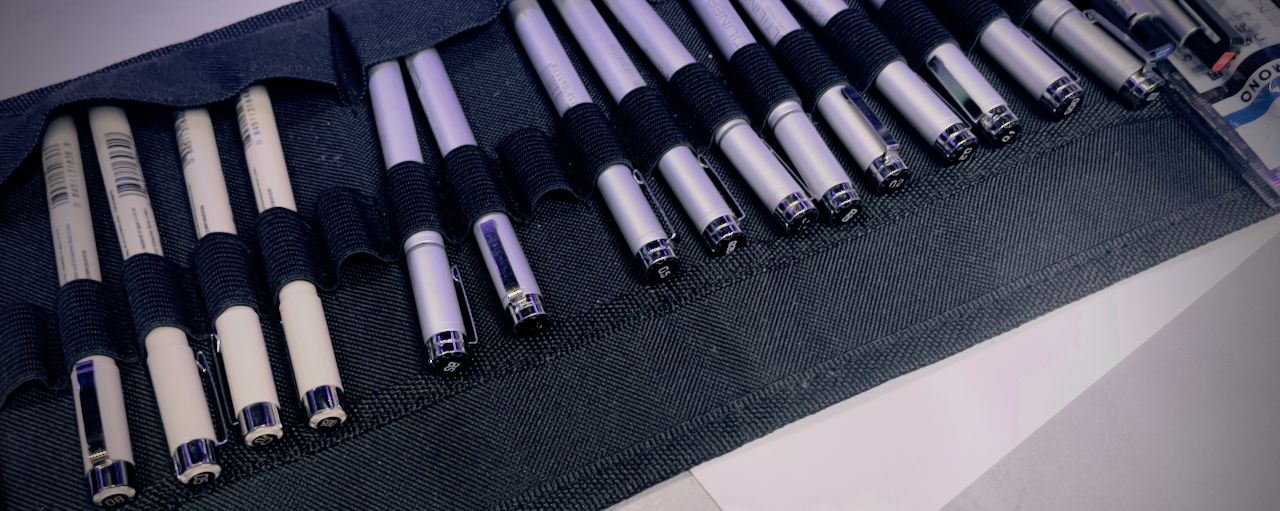 For linework, I use Copic multiliners in a range of sizes. These give me consistency and control, whether I’m laying down bold outlines or fine internal detail.
