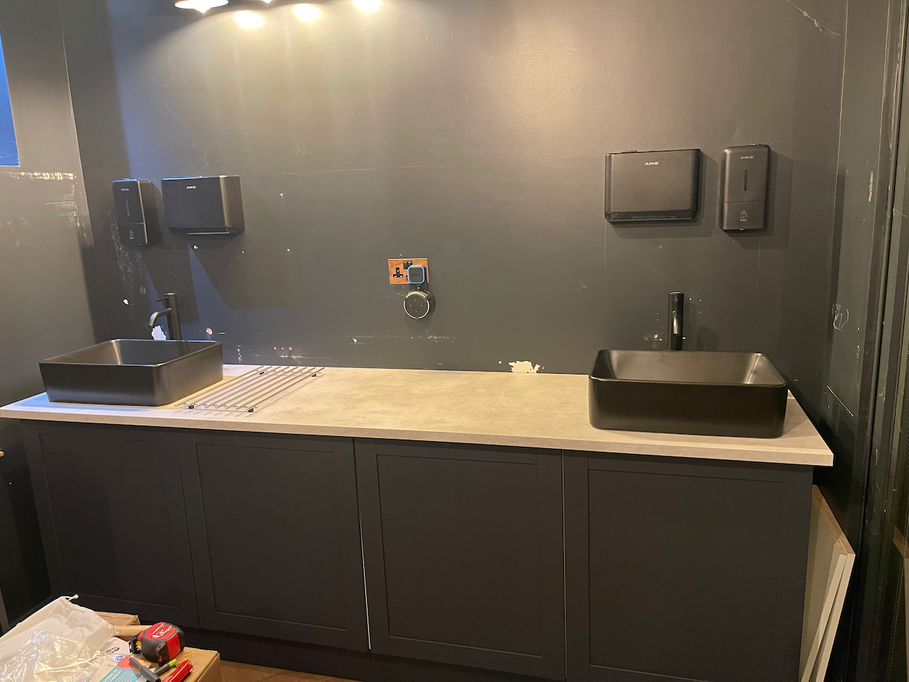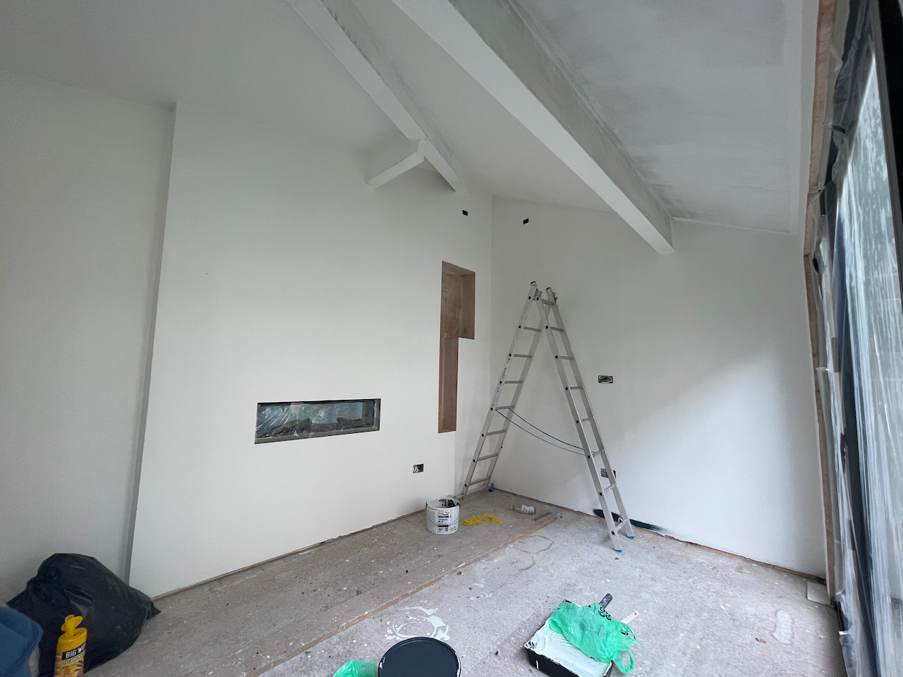 Up early, before the house was fully awake, getting hours in on the studio build. Cutting, fitting, planning, refining — whatever needed doing.